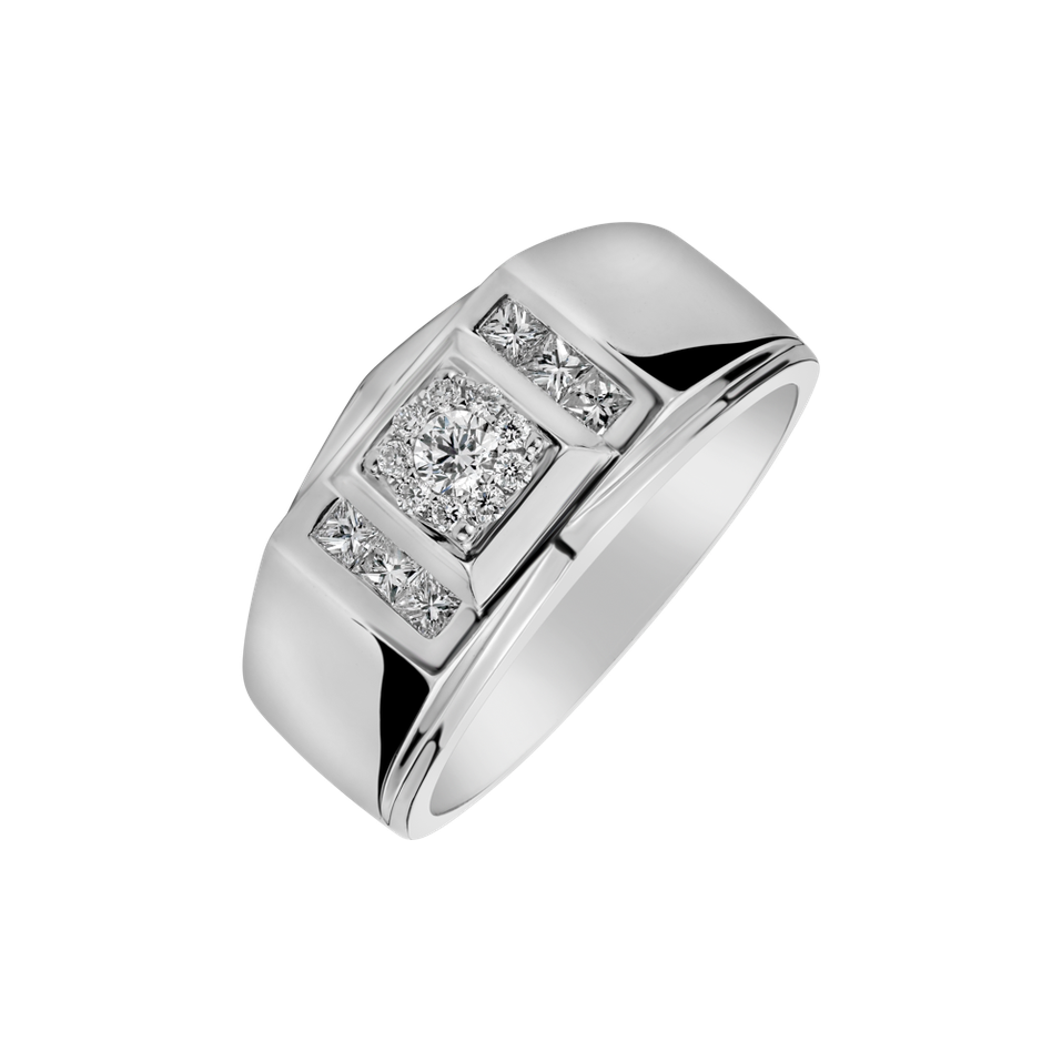 Kráľovský prsteň s diamantmi zasadený do krásneho 18kt bieleho zlata je skutočným odrazom prestíže a elegancie. Jeho jedinečná krása a žiarivá žiara stelesňujú luxus a exkluzivitu.