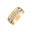 bílého a žlutého zlata, na níž vyniká jiskřivý centrální briliant. Výsledný