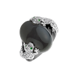 Každý váš pohyb bude teraz sprevádzaný očarujúcim zábleskom diamantov, mesačnej sivej a granátovej zelenej starostlivo zasadenej do nádherného prsteňa z 18kt čierneho zlata. Tento šperk je symbolom elegancie a jedinečnosti. Šperk je súčasťou kolekcie Animals.