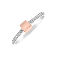 Diamantový prsteň vyrobený zo 14kt bieleho a ružového zlata je ako symfónia svetla a elegancie. Jeho trblietavé kamene sú ako jemné tóny, ktoré hrajú pieseň nekonečnej krásy a úcty. Šperk je súčasťou kolekcie Charming.