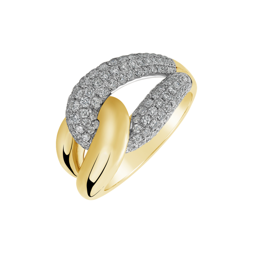 Krásny prsteň vyrobený z 18kt žltého a bieleho zlata osvetlený žiarou diamantov je dokonalým vyjadrením lásky a záväzku. Jeho elegantný dizajn je ideálny pre zásnuby alebo svadobné príležitosti. Šperk je súčasťou kolekcie Essential.