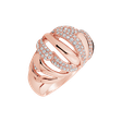 Nádherný prsteň z ružového zlata 18kt osvetlený žiarou diamantov je dokonalým vyjadrením lásky a záväzku. Jeho elegantný dizajn je ideálny pre zásnuby alebo svadobné príležitosti. Šperk je súčasťou kolekcie Essential.