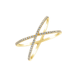 Zvodný kontrast žltého zlata a iskrivých čírych diamantov vytvára luxusný prsteň v modernom štýle. Dve diamantové línie prsteňa Sun Planet sa na vašom prste rafinovane pretínajú a efektne sa trblietajú ako najjasnejší východ slnka.