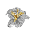Prsteň z bieleho a žltého zlata 18kt zdobený čírosťou diamantov je vyjadrením elegancie a moderného dizajnu. Jeho nápaditý vzhľad a jemný lesk sú symbolom nekonečnej krásy. Šperk je súčasťou kolekcie Flowers.
