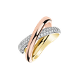 Tento prsteň z 18kt ruže, žltého a bieleho zlata s diamantmi je vyjadrením luxusu a elegancie. Jeho dizajn s ružovým, žltým a bielym zlatom a diamantmi vytvára harmonický celok, ktorý upúta pozornosť. Šperk je súčasťou kolekcie Essential.