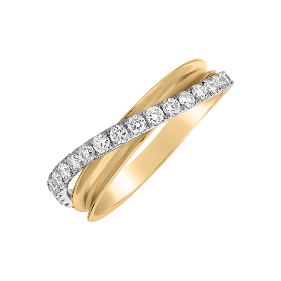 S týmto 14kt prsteňom zo žltého a bieleho zlata s diamantmi bude každý váš krok sprevádzaný bezchybným leskom, ktorý rozpráva príbeh skutočnej elegancie. Šperk je súčasťou kolekcie Essential.