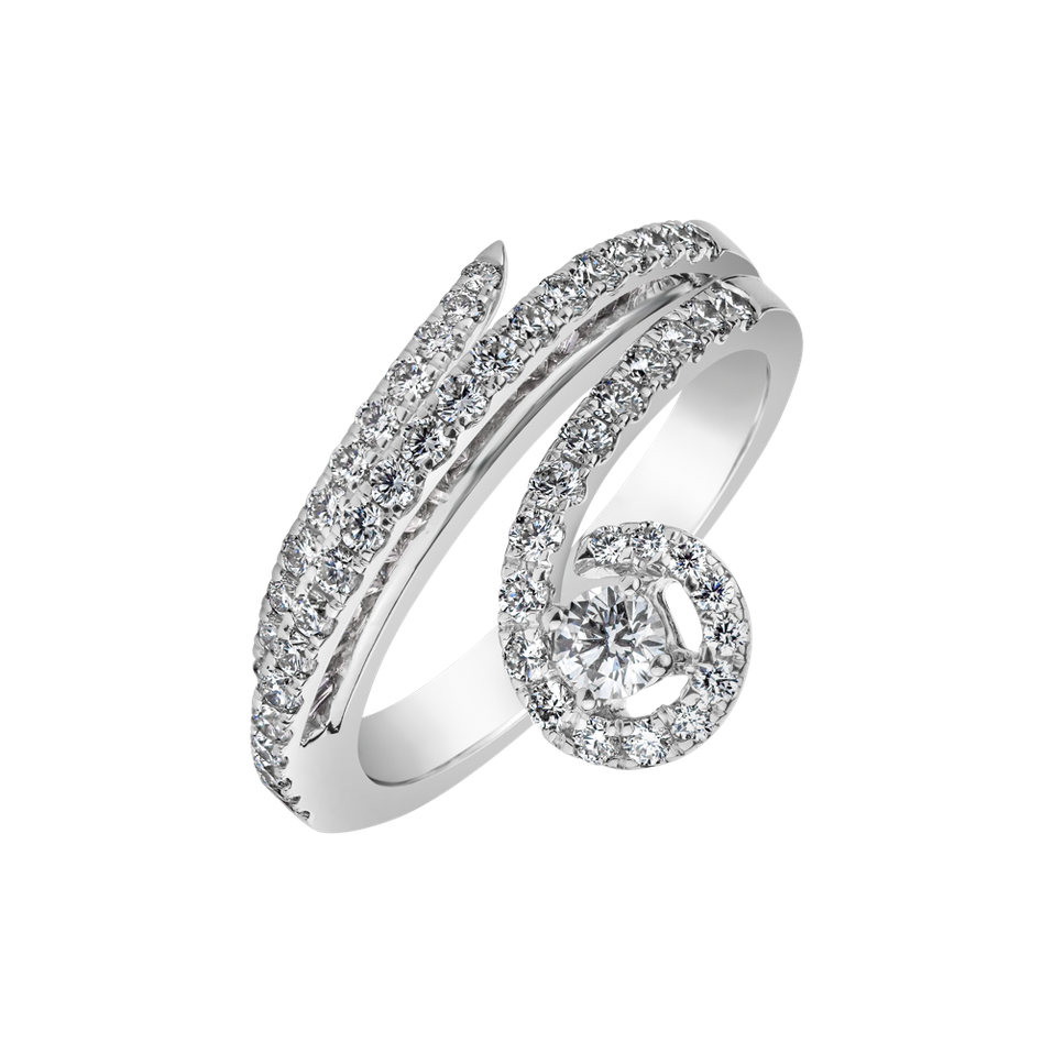 18kt biele zlato a trblietavé diamanty sa stretávajú v krásnom prsteni, ktorý je dokonalým doplnkom pre zásnubné sľuby a svadobné sľuby. Prineste do svojho vzťahu dotyk luxusu a večného spojenia. Šperk je súčasťou kolekcie Luxury Classic.