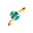 Klasický design zásnubního prstenu v moderním provedení. Oválný centrální apatit je po stranách zdoben dvěma menšími diamanty, což vypadá opravdu úchvatně.