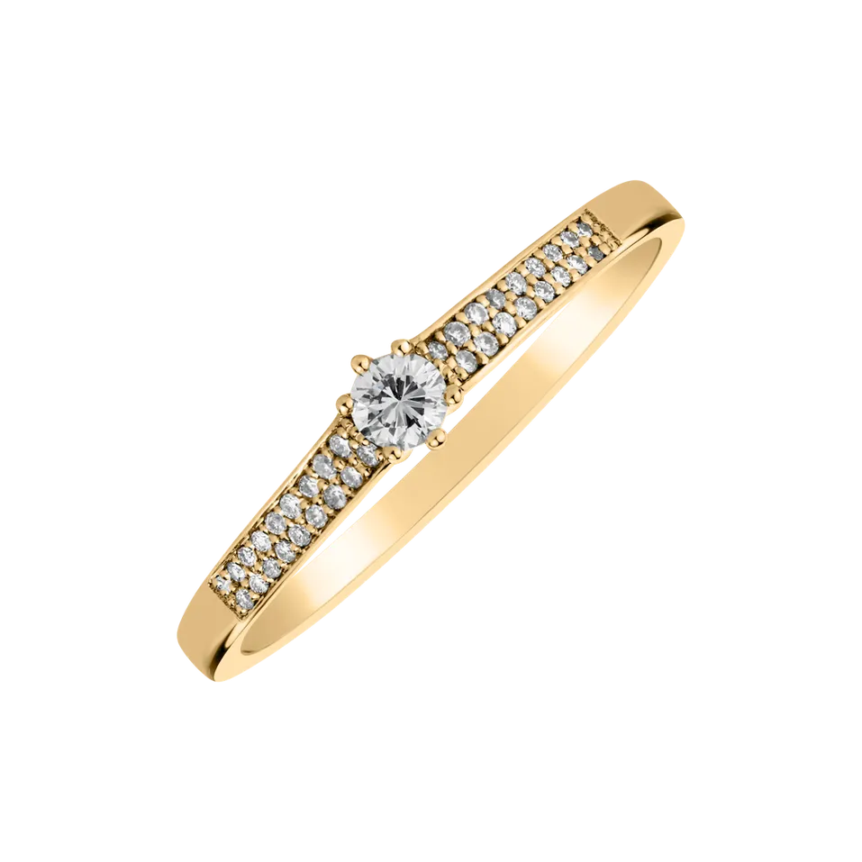 Vyjadrite svoj večný záväzok s týmto 14kt žltým diamantovým prsteňom. Každý kameň je prísľubom, každý lesk je dedičstvom vašej lásky. Šperk je súčasťou kolekcie Luxury Classic.