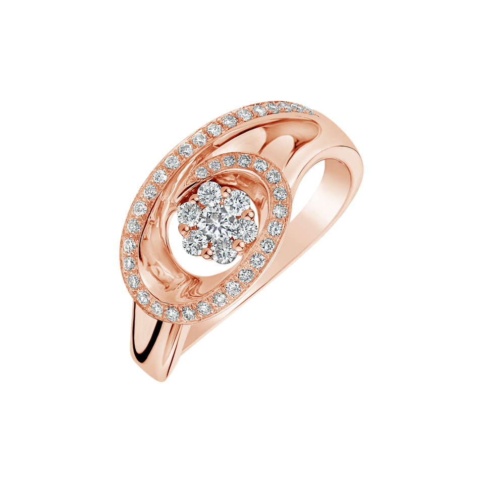 Nádherný prsteň z ružového zlata 18kt osvetlený žiarou diamantov je dokonalým vyjadrením lásky a záväzku. Jeho elegantný dizajn je ideálny pre zásnuby alebo svadobné príležitosti. Šperk je súčasťou kolekcie Mirage.