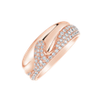 Nádherný prsteň z ružového zlata 18kt osvetlený žiarou diamantov je dokonalým vyjadrením lásky a záväzku. Jeho elegantný dizajn je ideálny pre zásnuby alebo svadobné príležitosti. Šperk je súčasťou kolekcie Essential.