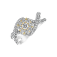 Diamanty a precíznosť. 18kt prsteň z bieleho a žltého zlata s diamantmi je majstrovským dielom ručnej práce a ozdobou pre tých, ktorí poznajú hodnotu skutočnej krásy a sily. Šperk je súčasťou kolekcie Mirage.