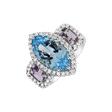 Prsteň s diamantmi, topásom a ametystmi Shallow Shasta