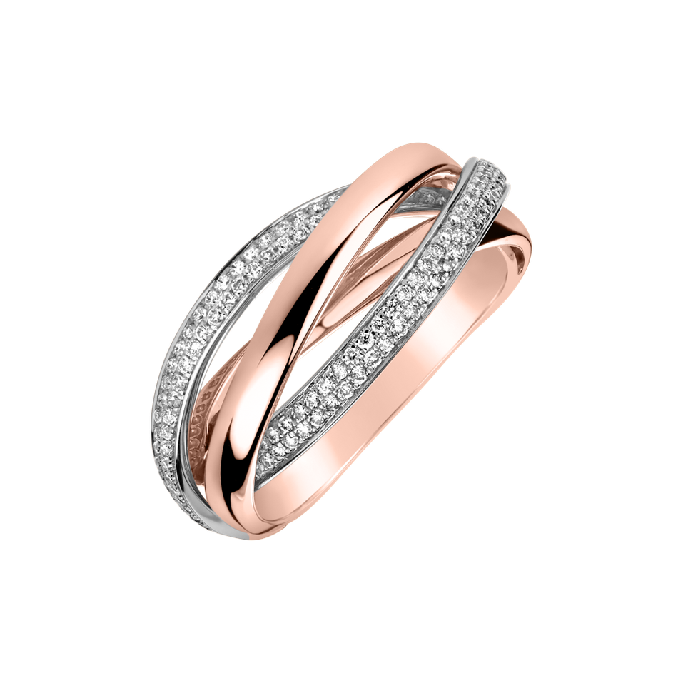 Diamantový prsteň vyrobený zo 14kt ruže a bieleho zlata je ako symfónia svetla a elegancie. Jeho trblietavé kamene sú ako jemné tóny, ktoré hrajú pieseň nekonečnej krásy a úcty. Šperk je súčasťou kolekcie Essential.