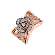 Kráľovský prsteň s diamantmi zasadený do krásnej 18kt ruže a čierneho zlata je skutočným odrazom prestíže a elegancie. Jeho jedinečná krása a žiarivá žiara stelesňujú luxus a exkluzivitu. Šperk je súčasťou kolekcie Flowers.