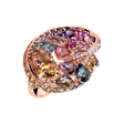 Symbol vašej osobnosti - 18kt prsteň z ružového zlata s diamantom, viacfarebným zafírom a brazílskym ametystom stelesňujúcim úspech a dokonalosť. Jeho žiara prináša pocit triumfu a nadčasovej krásy. Šperk je súčasťou kolekcie Fantasy.