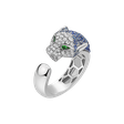 Elegancia nie je nikdy prehliadnutá, keď nosíte tento prsteň z bieleho zlata 18kt s diamantom, zafírom a granátovou zelenou, čo je dokonalým dôkazom toho, že skutočná krása môže byť jednoduchá a lesklá zároveň. Šperk je súčasťou kolekcie Animals.