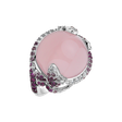 18kt prsteň z bieleho zlata s diamantom, ružovým kremeňom a zafírovou ružovou je ako kombinácia dvoch svetov - sveta precíznej výroby a sveta romantickej krásy. Jeho trblietavý diamant, ružový kremeň a zafírová ružová sú ako most medzi klasickou eleganciou a moderným nádychom. Šperk je súčasťou kolekcie Blossoms.