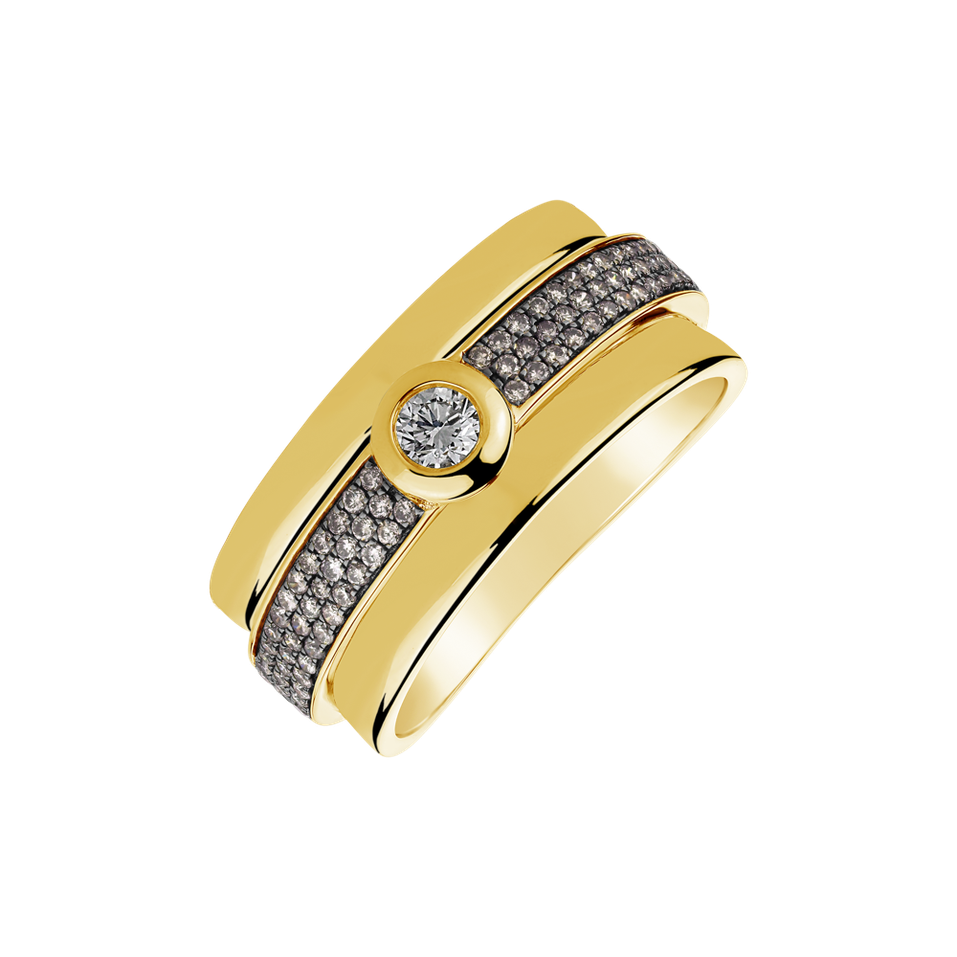 Elegancia nie je nikdy prehliadnutá, keď nosíte tento 14kt žlto-čierny zlatý prsteň s bielymi a hnedými diamantmi, čo je dokonalým dôkazom toho, že skutočná krása môže byť jednoduchá a lesklá zároveň. Šperk je súčasťou kolekcie Luxury Classic.