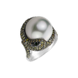 Prsteň vyrobený z 18kt bieleho a čierneho zlata s diamantom, morskou bielou perlou, granátovo zelenými a hnedými diamantmi, ktorý sa môže pochváliť svojou dokonalosťou a starostlivo vybranými kameňmi, je symbolickou pečaťou večnej elegancie. Šperk je súčasťou kolekcie Ocean & River.
