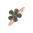 S týmto 14kt ružovým prsteňom s kombináciou ružového a čierneho zlata a hnedých diamantov zažiarite eleganciou a sofistikovanosťou. Každý diamant je starostlivo nastavený tak, aby zdôrazňoval krásu tohto prsteňa. Ideálna voľba pre odvážnu ženu s vkusom. Šperk je súčasťou kolekcie Flowers.