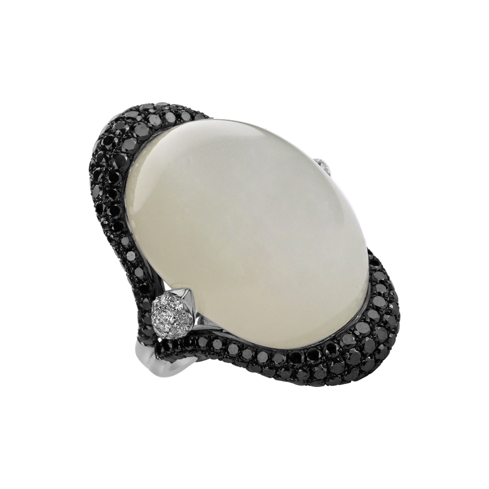 Prsteň s mesačným kameňom, čiernymi a bielymi diamantmi Gentility Miracle