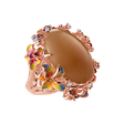 Tento 18kt prsteň z ružového zlata s diamantmi, mesačným kameňom oranžový, rubínový a viacfarebný zafír je majstrovské dielo, ktoré odráža víziu a odhodlanie. Jeho žiarivý dizajn je oslavou úspechu a dokonalosti. Prsteň zdobia krásne diamanty a drahokamy, ktoré tomuto šperku dodávajú nesmiernu eleganciu a šarm. Šperk je súčasťou kolekcie Flowers.