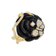 Tento prsteň vyrobený z 18kt žltého zlata s diamantmi a ónyxom je ako šperk pre skutočnú kráľovnú. Jeho jemné krivky a trblietavé drahokamy zvýraznia vašu krásu. Šperk je súčasťou kolekcie Flowers.