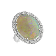 Modernú eleganciu a trvalú hodnotu kombinuje tento prsteň vyrobený zo 14kt bieleho zlata s diamantmi a opálovou bielou farbou. Šperk je súčasťou kolekcie Blossoms.