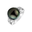 Prsteň z bieleho zlata s kapacitou 18kt, zdobený nádhernými diamantmi a čiernou perlou mora, je symbolom čistoty a sofistikovanej elegancie. Jeho výnimočný dizajn a lesk vás uchváti. Šperk je súčasťou kolekcie Ocean & River.