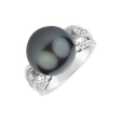 Prsteň z bieleho zlata s kapacitou 18kt, zdobený nádhernými diamantmi a čiernou perlou mora, je symbolom čistoty a sofistikovanej elegancie. Jeho výnimočný dizajn a lesk vás uchváti. Šperk je súčasťou kolekcie Ocean & River.