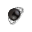 Prsteň z bieleho zlata s kapacitou 18kt, zdobený nádhernými diamantmi a čiernou perlou mora, je symbolom čistoty a sofistikovanej elegancie. Jeho výnimočný dizajn a lesk vás uchváti. Šperk je súčasťou kolekcie Ocean & River.