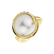 Elegantný prsteň so 14kt žltým zlatom, diamantmi a morskou bielou perlou. Perfektný doplnok pre každú príležitosť na úspech. Šperk je súčasťou kolekcie Ocean & River.