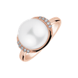 18kt prsteň z ružového zlata s diamantmi a morskou bielou perlou - šperk, ktorý žiari krásou a tajomstvom morských hlbín, ideálny pre tých, ktorí oceňujú eleganciu. Šperk je súčasťou kolekcie Ocean & River.