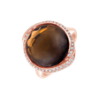 18kt prsteň z ružového zlata s diamantmi a kogniakovým kremeňom je ako poklad strateného kráľovstva. Jeho trblietavé diamanty a vzácny kogniakový kremeň symbolizujú luxus, silu a lákavú krásu. Šperk je súčasťou kolekcie Blossoms.