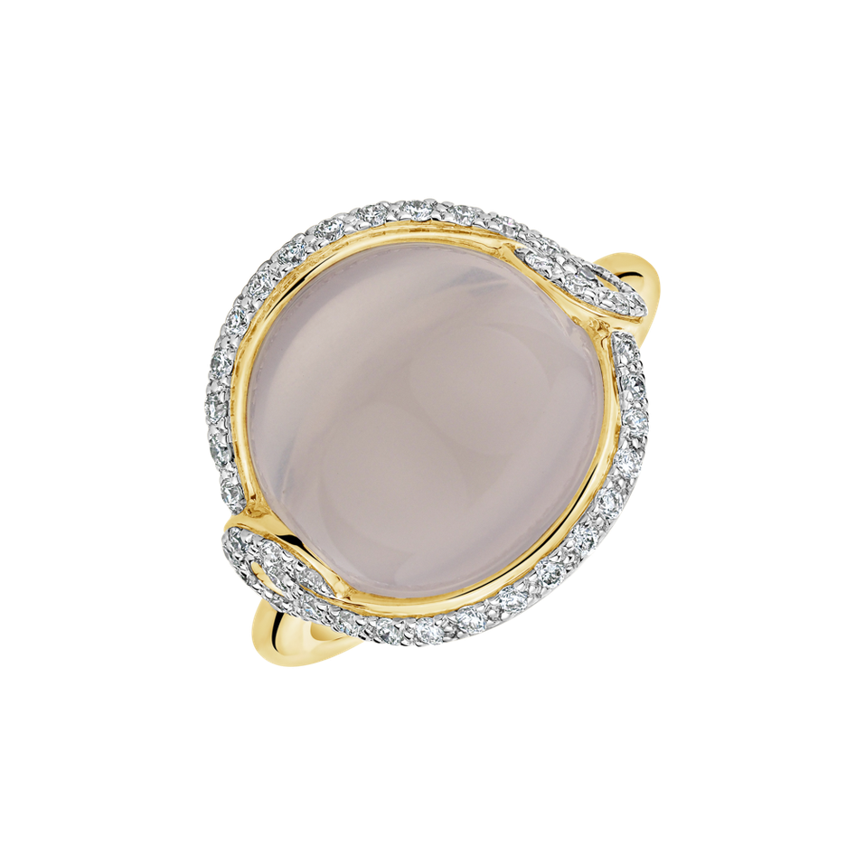 Prsteň vyrobený z 18kt žltého zlata s diamantmi a bielym kremeňom je ako slnečný letný deň, keď sa všetko leskne a leskne. Jeho diamanty a biely kremeň vytvárajú krásnu kombináciu, ktorá dodáva šperkom sviežosť. Šperk je súčasťou kolekcie Blossoms.