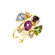 Prsteň s rhodolitom a diamantmi, peridotom a topásom Floy