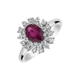 Jemnosť a elegancia sa spájajú v tomto prsteni z bieleho zlata 18kt s diamantmi a rubínom, ktorý oslavuje každé vaše gesto. Šperk je súčasťou kolekcie Diana.