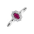 Tento nádherný prsteň z bieleho zlata 14kt s diamantmi a rubínom je elegantným doplnkom pre každú príležitosť. Rubín symbolizuje lásku a vášeň a diamanty dodávajú prsteňu krásny lesk a svetlo. Toto je šperk pre tých, ktorí chcú vyjadriť svoje vášnivé emócie. Šperk je súčasťou kolekcie Diana.