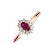 Tento nádherný prsteň z ružového zlata 14kt s diamantmi a rubínom je elegantným doplnkom pre každú príležitosť. Rubín symbolizuje lásku a vášeň a diamanty dodávajú prsteňu krásny lesk a svetlo. Toto je šperk pre tých, ktorí chcú vyjadriť svoje vášnivé emócie. Šperk je súčasťou kolekcie Diana.