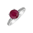 Romantický prsteň z bieleho zlata 14kt s diamantmi a rubínom, ktorý odráža silu a odvahu v každom diamante a drahokame, je jasným vyjadrením vášho odhodlania a pocitu dokonalosti. Šperk je súčasťou kolekcie Luxury Classic.