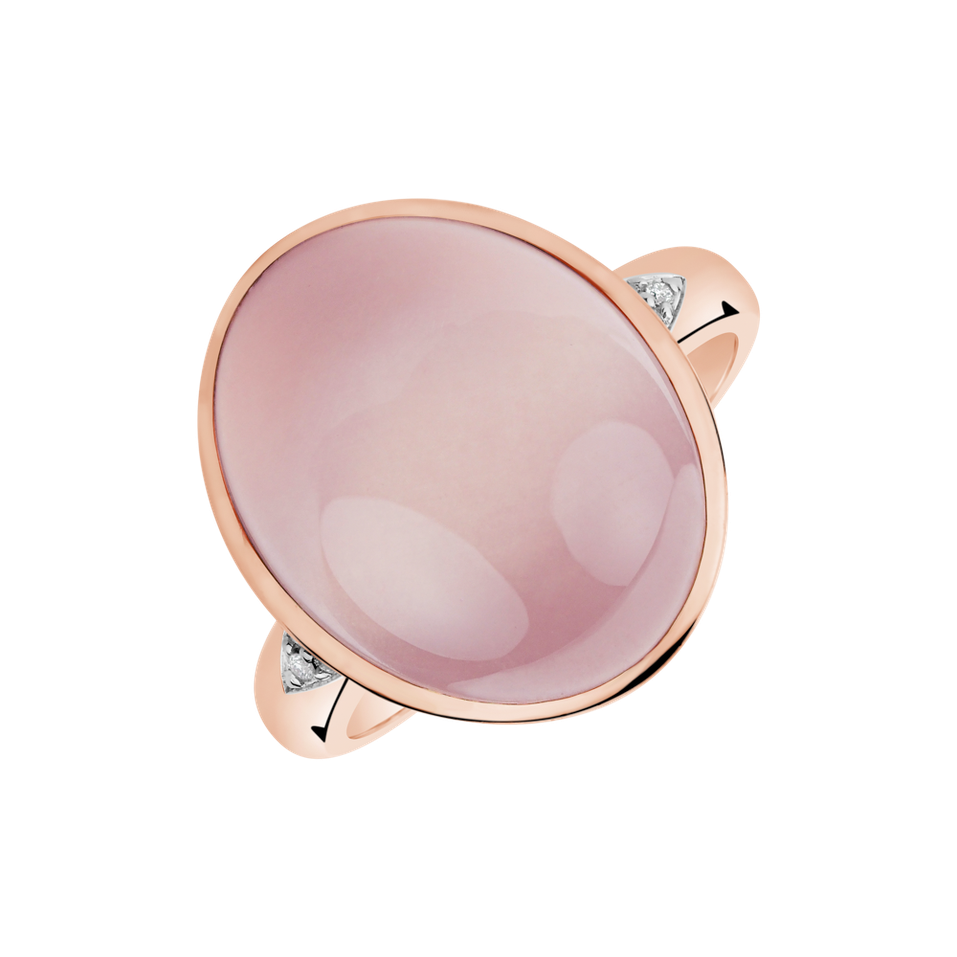 Ružový kremeň a presnosť. 18kt prsteň z ružového zlata s diamantmi a ružovým kremeňom je majstrovským dielom ručnej práce a ozdobou pre tých, ktorí poznajú hodnotu skutočnej krásy a sily. Šperk je súčasťou kolekcie Blossoms.