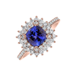 Tento 14kt prsteň z ružového zlata s diamantmi a tanzanitom je symbolom krásy a elegancie. Jeho opulentný dizajn a trblietavé kamene ohromia každého, kto vidí vaše bohatstvo. Tanzanit dodáva tomuto prsteňu tajomnosť a jemnosť a zdôrazňuje váš jedinečný štýl. Šperk je súčasťou kolekcie Diana.
