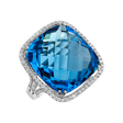 Poetika v kombinaci s nejněžnější ženskostí byly předlohou pro skvost v podobě prstenu s centrálním blankytně modrým topazem zasazeným do královského diamantového trůnu.