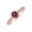 14kt prsteň z ružového zlata s diamantmi a topásovou ružovou je klenotom krásy a elegancie. Jeho topásový lesk a jemný dizajn sú synonymom sofistikovanosti, čo z neho robí doplnok ku každej dôležitej udalosti. Šperk je súčasťou kolekcie Luxury Classic.