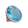 Odvážne a tajomné. Toto 18kt ružové zlato s diamantom, topásovou oblohou a ametystovou brazíliou je dokonalým doplnkom pre každú noc, keď chcete, aby sa všetko točilo okolo vás. Šperk je súčasťou kolekcie Blossoms.