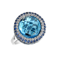 Každý lúč svetla sa zdá byť jasnejší, keď sa odráža od tohto nádherného prsteňa z bieleho zlata 18kt s diamantom, topásom swiss a zafírom. Jeden šperk - tisíc okamihov nekonečnej brilancie. Šperk je súčasťou kolekcie Fantasy.