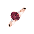 Klasický design zásnubního prstenu v moderním provedení. Oválný centrální turmalín je po stranách zdoben dvěma menšími diamanty, což vypadá opravdu úchvatně.