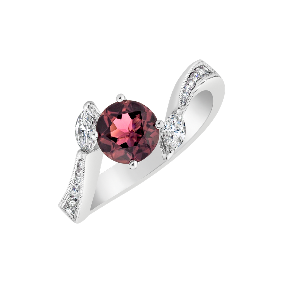 Tento prsteň z bieleho zlata 18kt je zdobený krásnymi diamantmi a fialovým turmalínom. Je dokonalým doplnkom pre každú osobnosť s chuťou. Jeho jedinečný dizajn a nádherný fialový turmalín dodávajú šperkom žiarivú eleganciu. Bude skvelým doplnkom vášho outfitu a prinesie vám veľa komplimentov. Šperk je súčasťou kolekcie Luxury Classic.