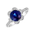 Kombinácia diamantov a zafíru na tomto prsteni z bieleho zlata 14kt vytvára dokonalú harmóniu farieb a iskry. Tento zafírový prsteň, ktorý je ideálny na zásnuby alebo svadbu, je vyjadrením hlbokej lásky a záväzku, ktorý oslavuje jedinečné okamihy vo vašom živote. Šperk je súčasťou kolekcie Flowers.